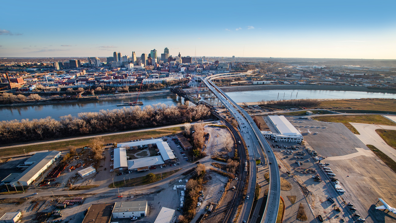 Within a few square miles in downtown Kansas City, Missouri, highways, rail lines, a downtown airport and Missouri River barge traffic are woven together in a complex transportation network that moves people and goods throughout the region.