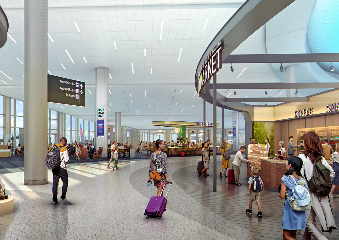 - A variety of new shopping and dining options with 360-degree views of all 16 gates